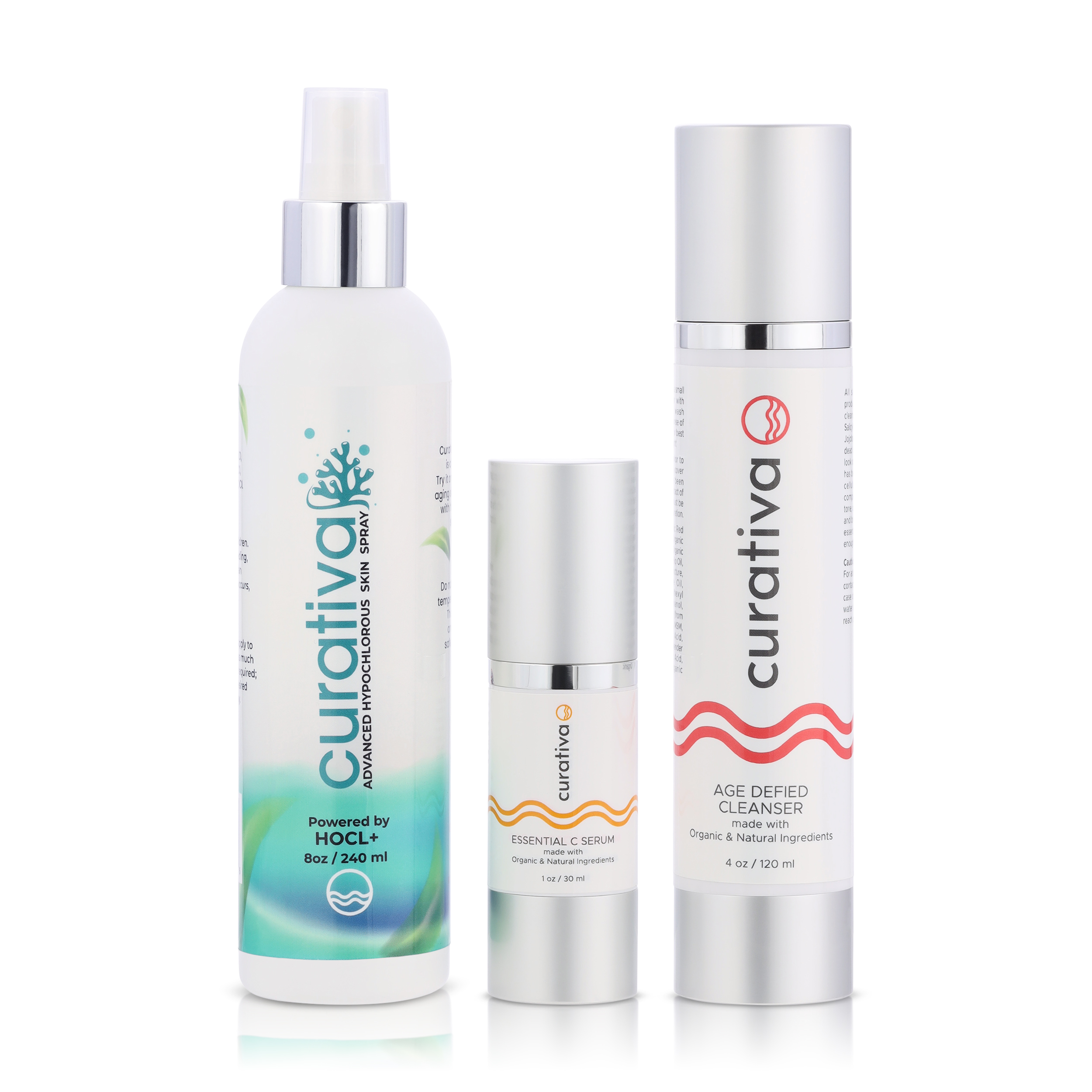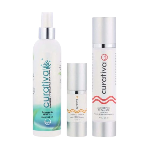 Size: 8 oz / 237 ml Hypochlorous Acid Skin Spray, 4 oz / 120 ml Age Defied Cleanser, 1 oz / 30 ml Essential C Serum
