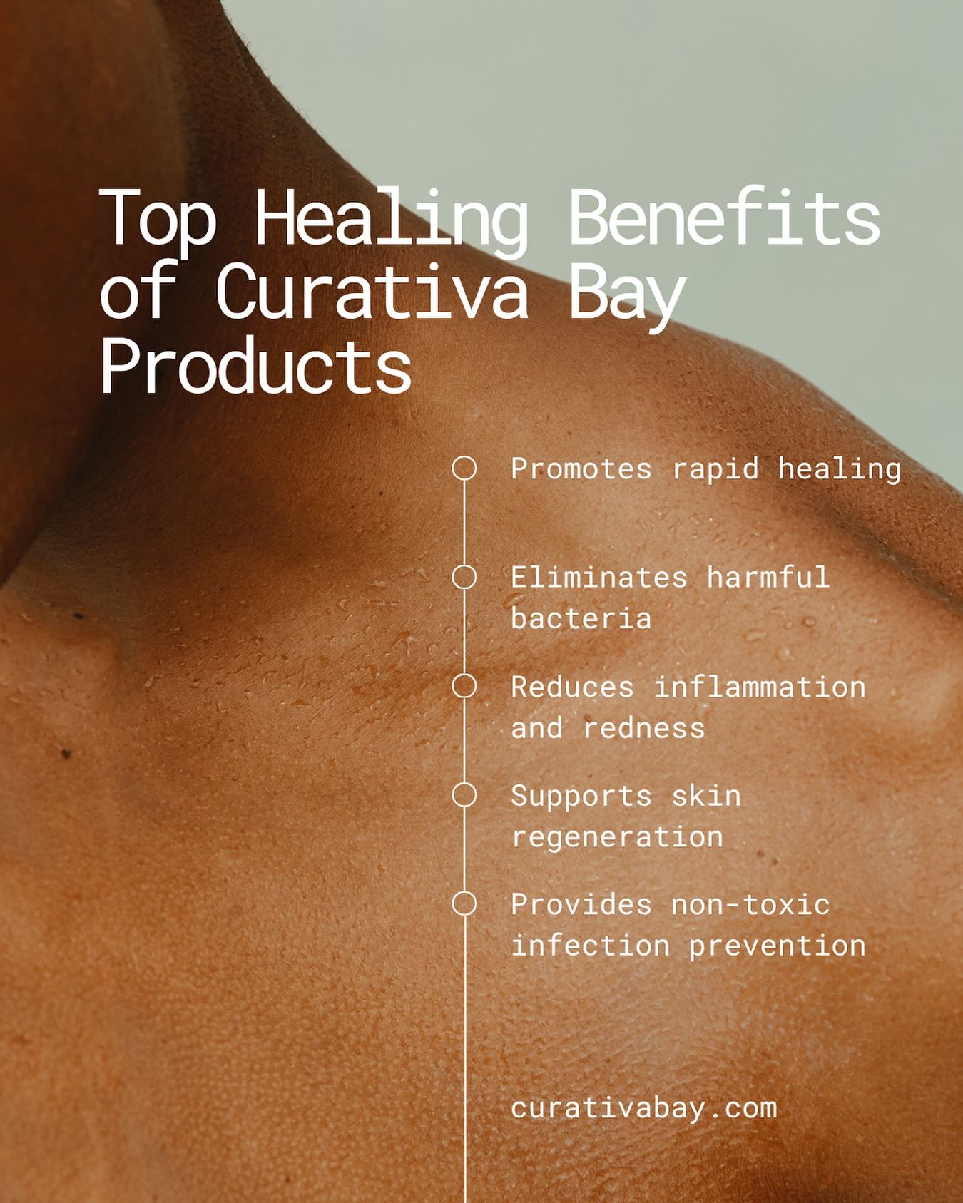 My face and skin had a peeling problem because dryness. I tried Curativa Bay after some co-workers were telling me how good it is. At first, I was skeptical. Now, my skin does not peel and it looks healthy looking. I love this product a lot!
