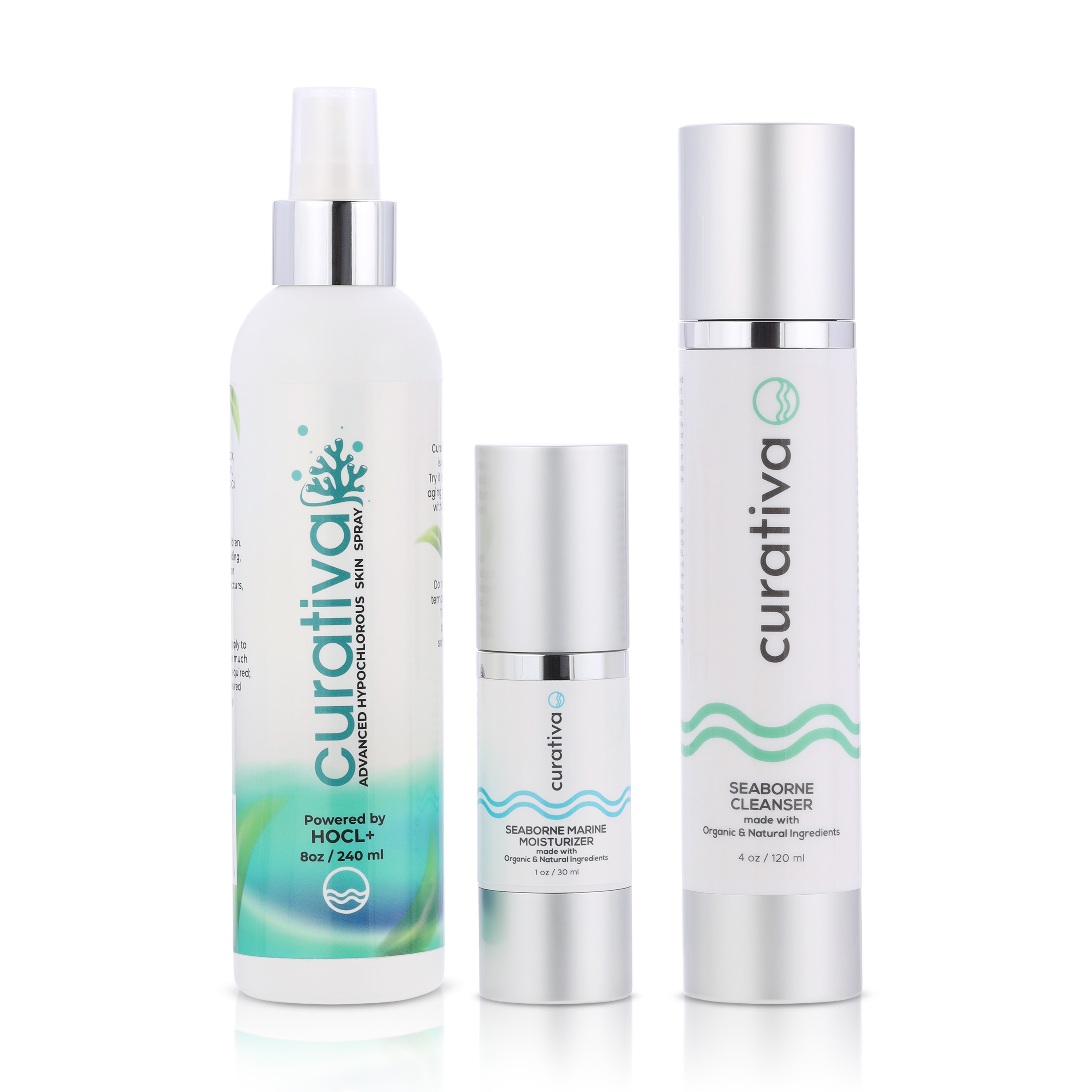 Size: 8 oz / 237 ml Hypochlorous Spray, 4 oz / 120 ml Seaborne Cleanser, 1 oz / 30 ml Seaborne Marine Moisturizer