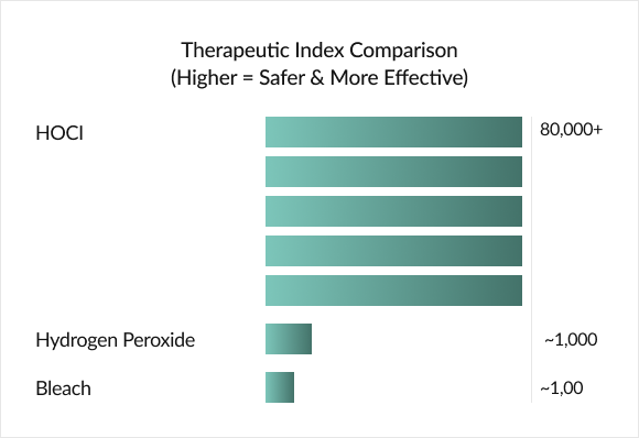 Scientists have studied HOCl for over 100 years, with research accelerating in recent decades. The finding? Powerful effectiveness paired with exceptional safety.